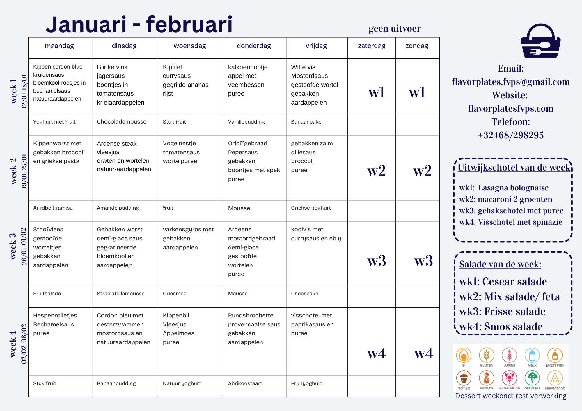 Opgelet! De maandmenu wordt uitgedrukt per 4 weken, dit kunnen soms 2 maanden in 1 maandmenu zijn.